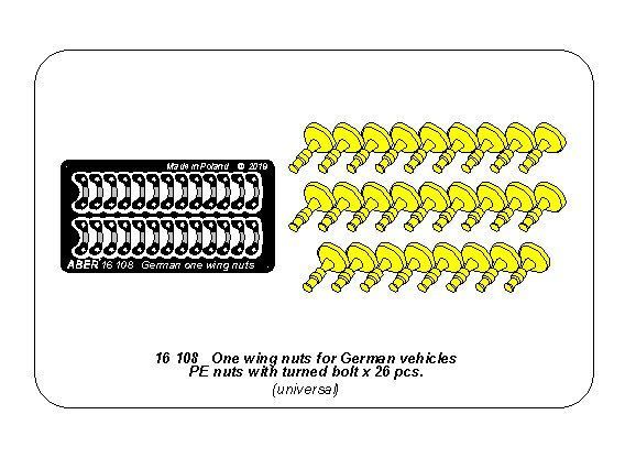 1:16 One wing nuts for German vehicles PE nuts with turned bolt x 26 pcs.