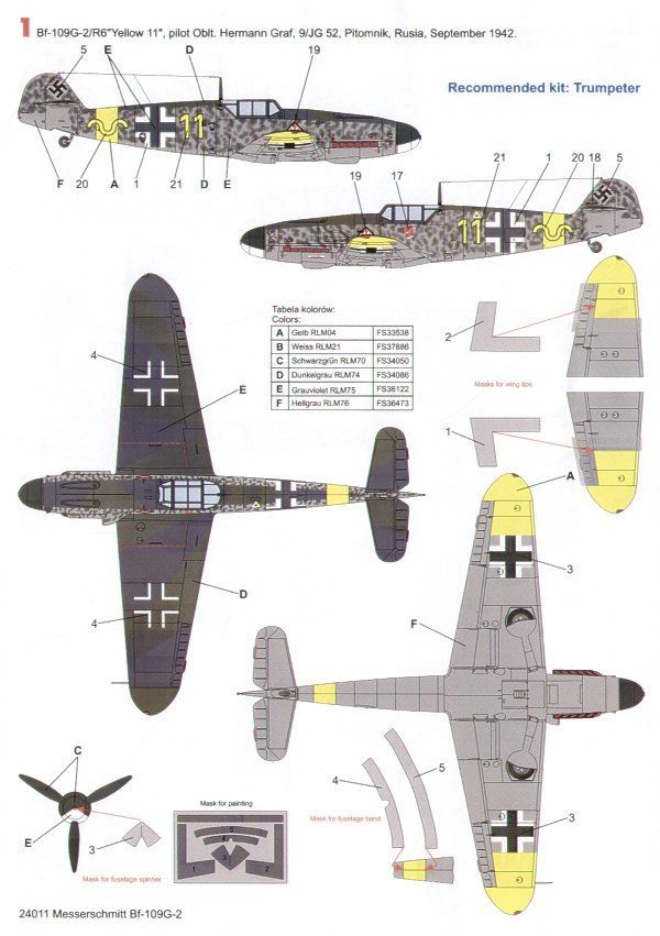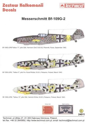 Yellow 11 9/JG 52 Oblt Herman Graf 3/1943; Yellow 3+- 6/JG 5 Rudolf Muller; Yellow 12 6/JG 5 Oblt Heinrich Ehrler; Both Finland 3/1943; Inc canopy