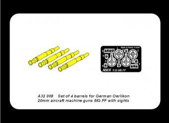 1:32 Set of 4 barrels for German Oerlikon 20mm aircraft machine guns MG FF with sights