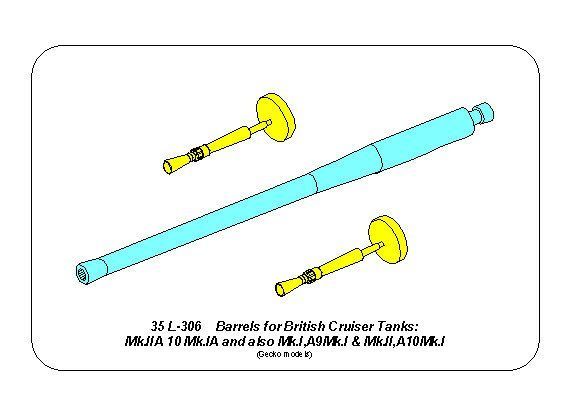 1:35 Barrels for BritishCruiser Tanks Mk.IIA, A10 Mk.IA and also Mk.I A9; 40mm 2pdr. + 2pcs. Besa MG