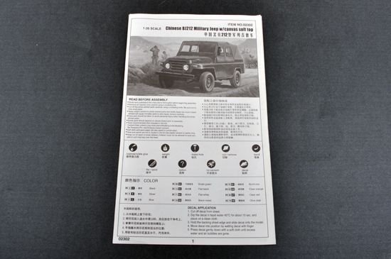 1:35 Chinese BJ212 Military Jeep w/canvas soft top