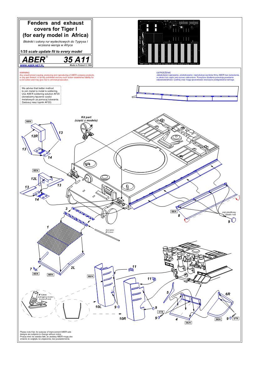 1:35 	Fenders and exhaust covers for Tiger I (for early model in Africa)