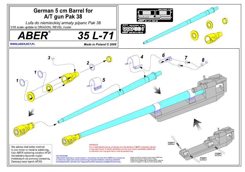 1:35 Germ.5cm barrel for anti-tank gun Pak 38