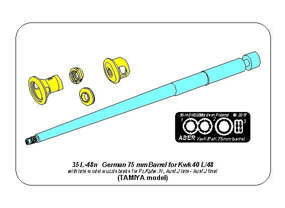 1:35 German 75 mm Barrel for Kwk 40 L/48 with late model muzzle brake for Pz.Kpfw. IV, Ausf. J late