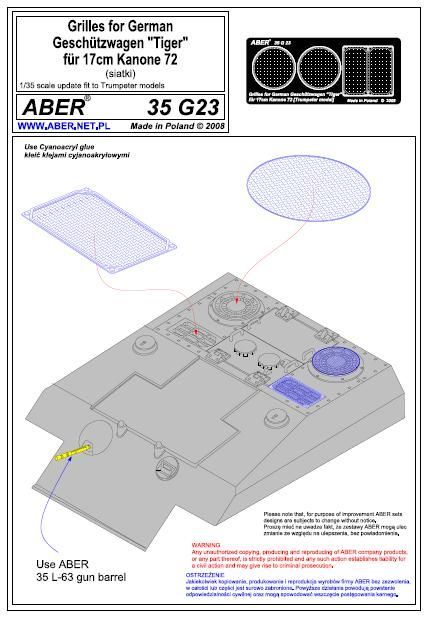 1:35 Grilles for german self proppeled gun Geschützwagen ''Tiger'' für 17cm Kanone 72