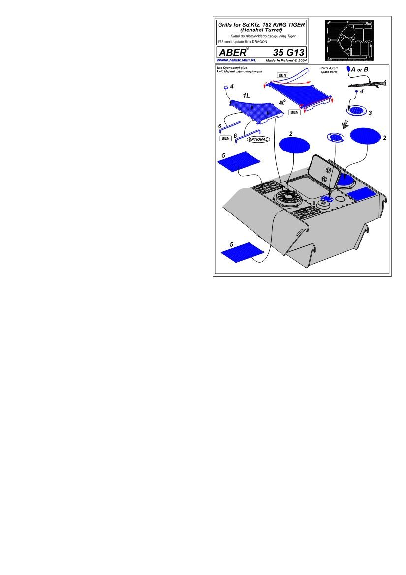 1:35 Grilles for german tank Sd.Kfz.182 King Tiger (Henshel Turret)