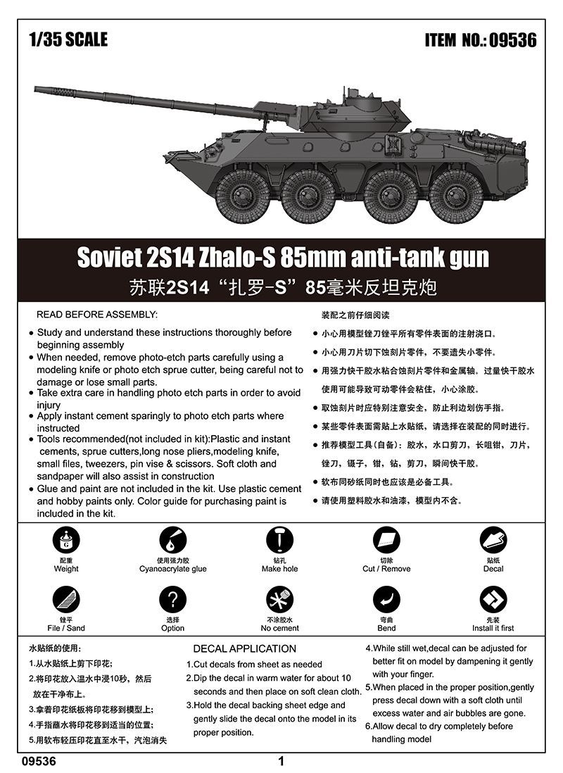 1:35 Soviet 2S14 Zhalo-S 85mm anti-tank gun