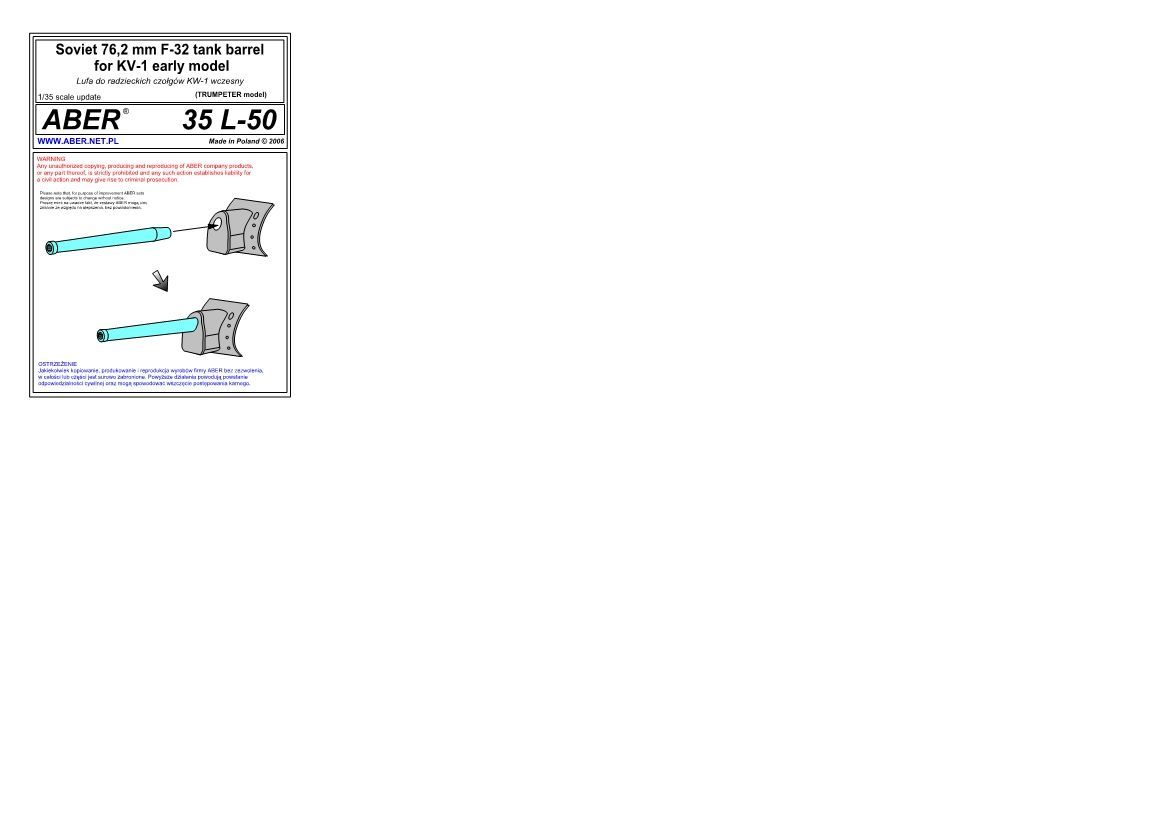 1:35 Soviet 76,2 mm F-32 tank barrel for KV-1 - early model