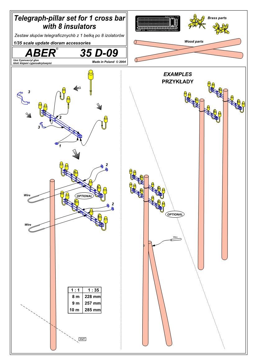 1:35 Telegraph - pillar set for 1 cross bars with 8 insulators each