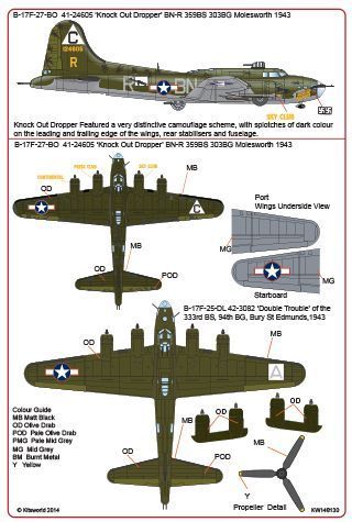 B-17F-27-BO 41-24605 'Knockout Dropper' 359th BS 303rd BG (BN-R)