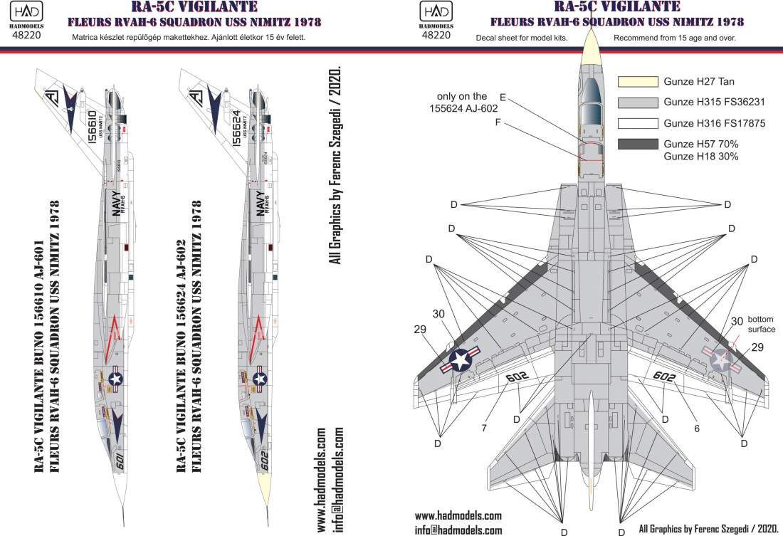 1:48 RA-5C Vigilante USS NIMITZ decal sheet