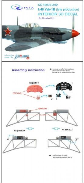 1:48 Yak-1B (late production) dashboard Interior 3D Decal