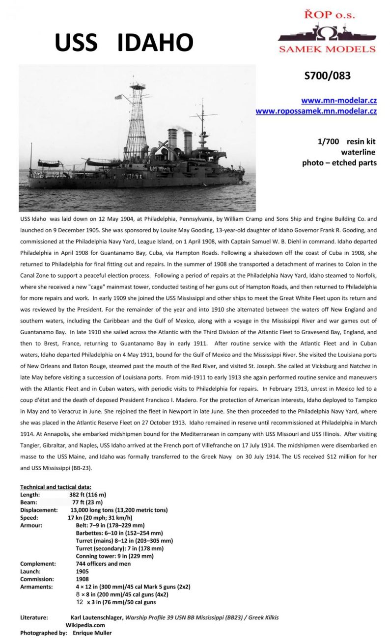 1:700 Battle ship USS Idaho BB 24  1909
