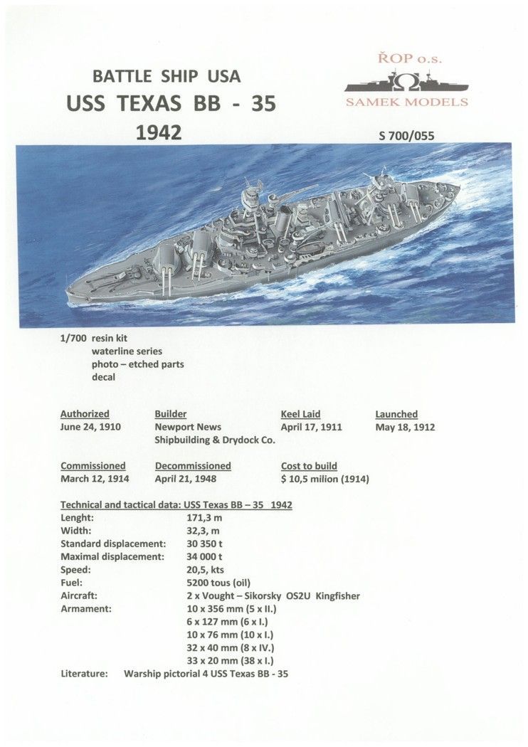 1:700 Battle ship USS TEXAS BB-35 1942