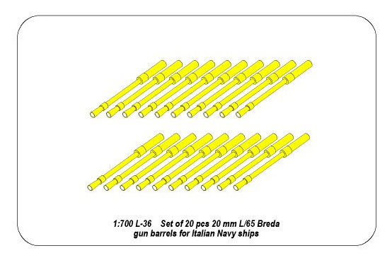 1:700 Set of 20 pcs 20 mm L/65 Breda gun barrels for Italian Navy ships
