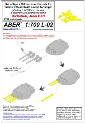 1:700 Set of 8 pcs 380 mm short barrels for turrets with antiblast covers ships Richelieu, Jean Bart