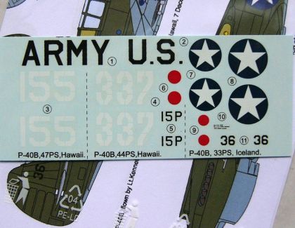 1:72 Decals Curtiss P-40 over Pearl Harbor