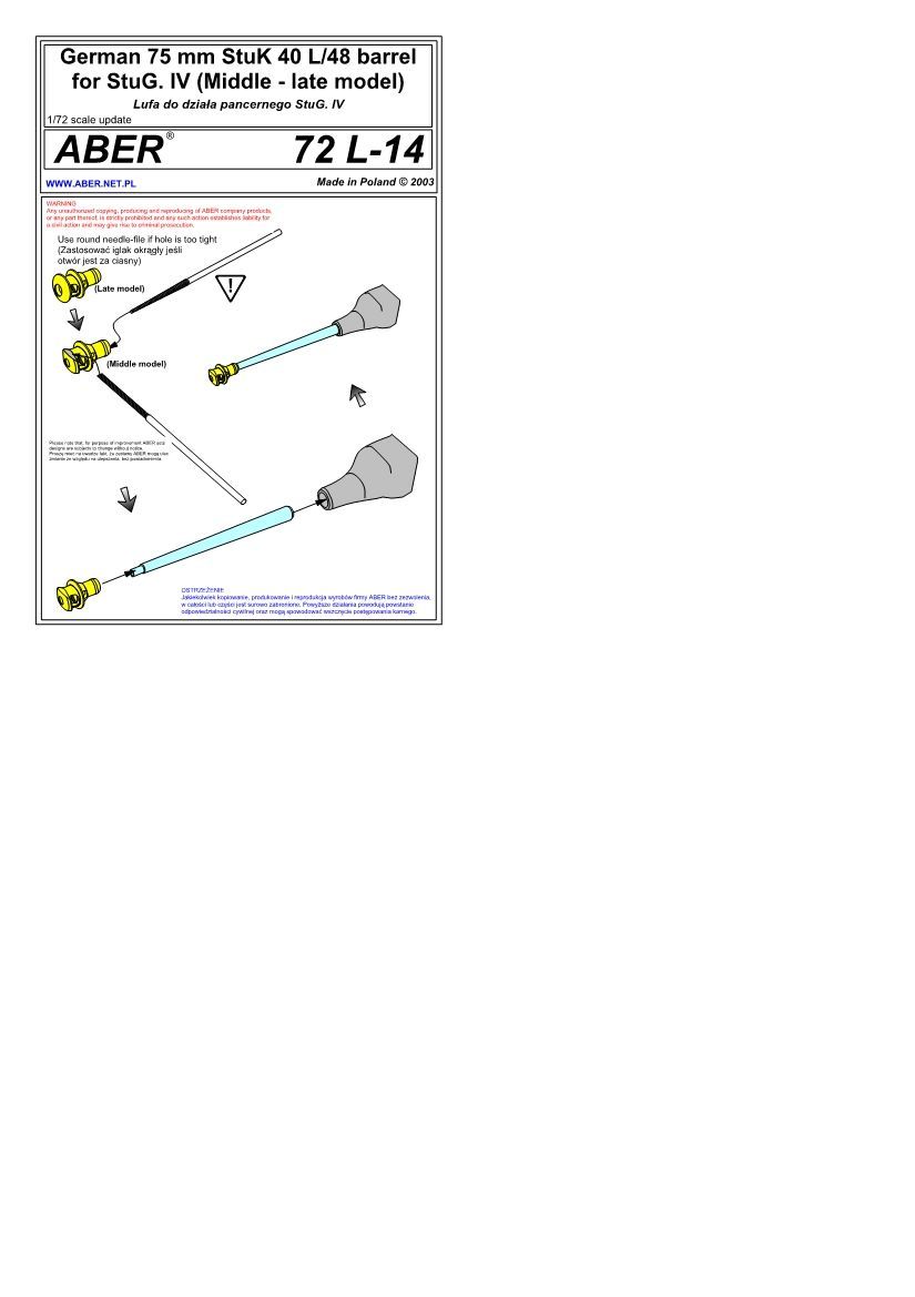 1:72 German 75mm StuK 40 L/48 barrel for StuG. IV (mid model)