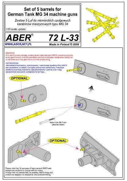 1:72 Set of 5 Barrels for German Tank MG 34 machine guns