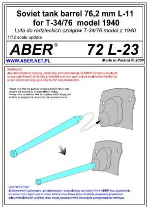 1:72 Soviet tank barrel 76,2mm L-11 for T-34/76 model 1940