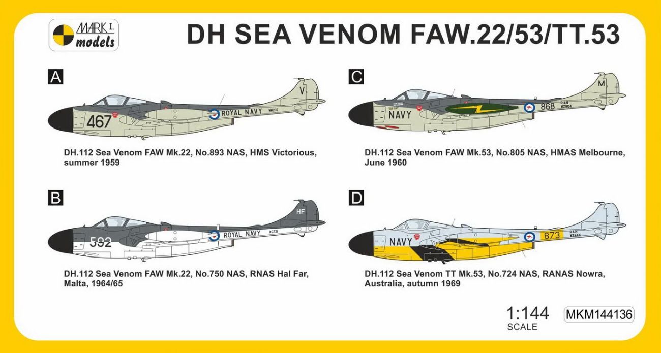 1:144 de Havilland Sea Venom FAW.22/53/TT.53 'Far East & Australia'