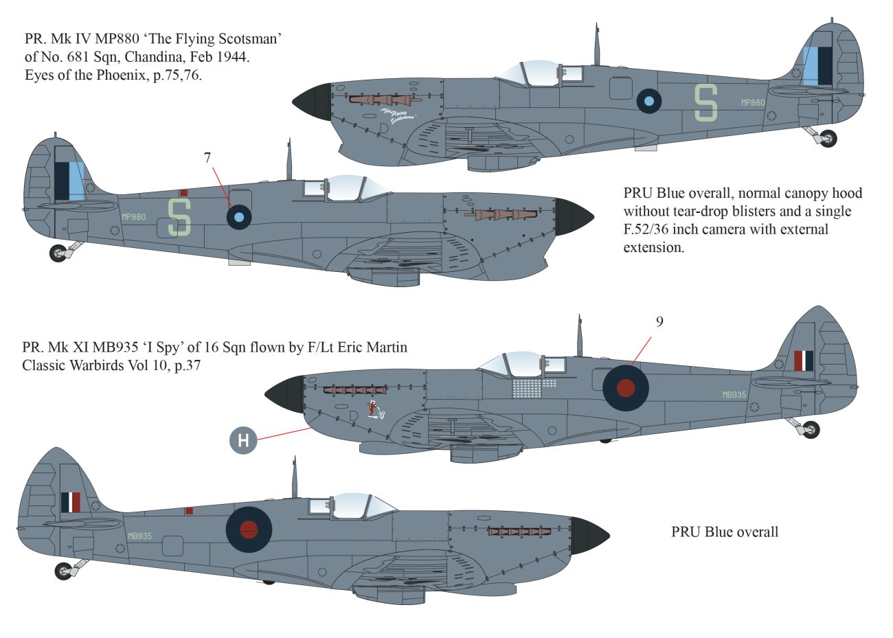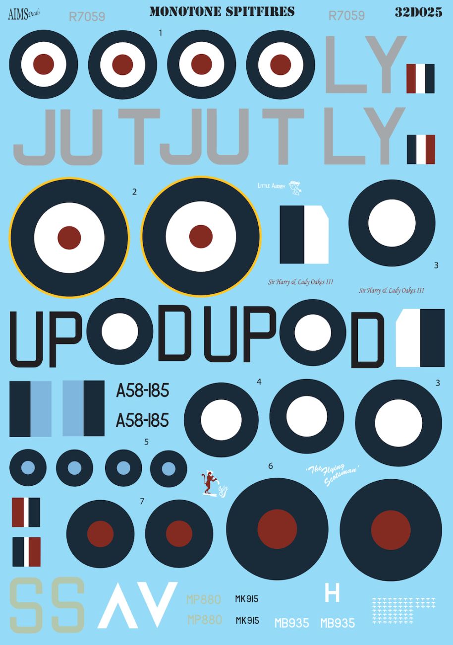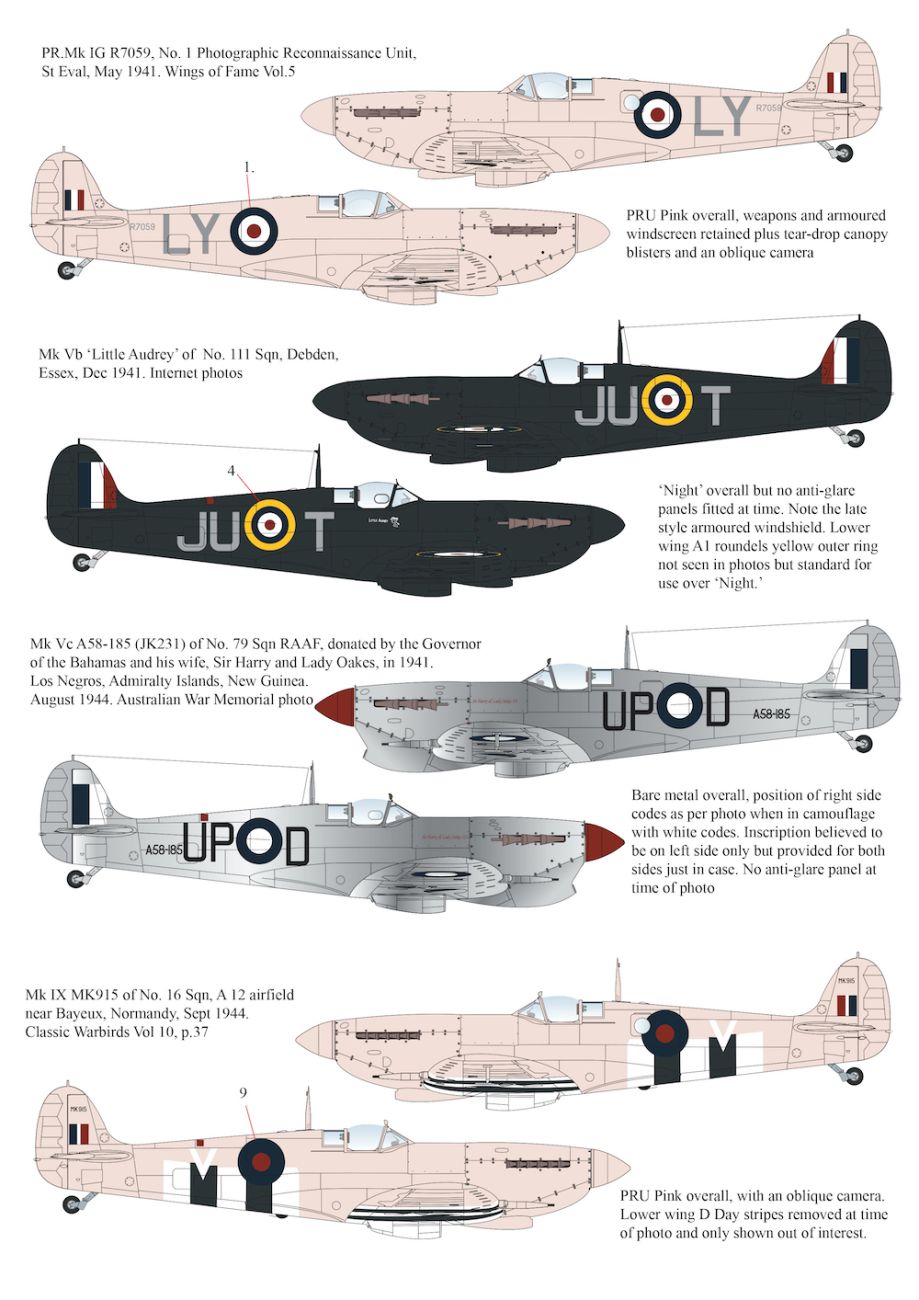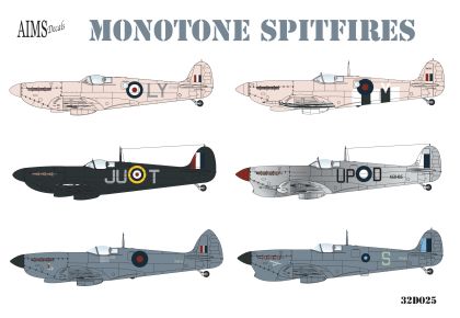 1:32 Monotone Supermarine Spitfires - Pr Mk.IV, Pr Mk.IX, PR Mk.IG, Mk.Vc, Mk.Vb