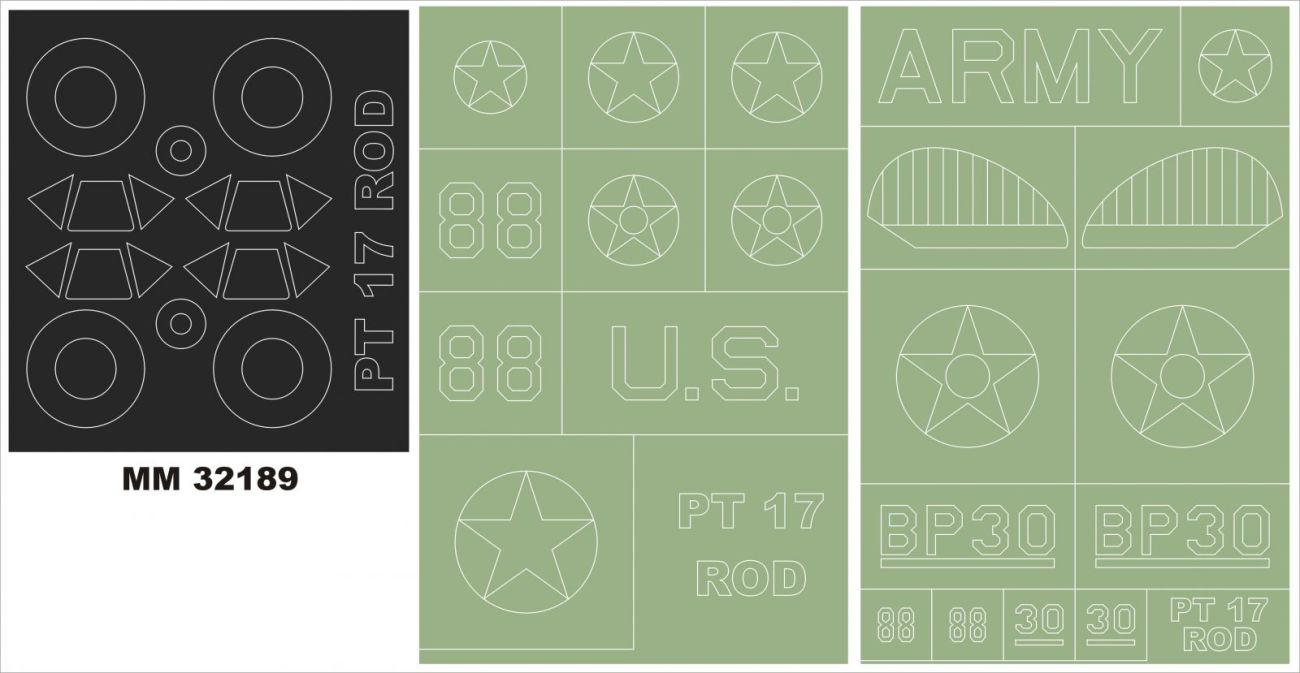 1:32 Stearman PT-17 Kaydet 2 canopy masks (interior and exterior canopy masks) + 2 insignia masks