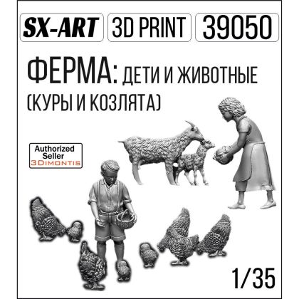 1:/35 Village farm: children chicken and goats