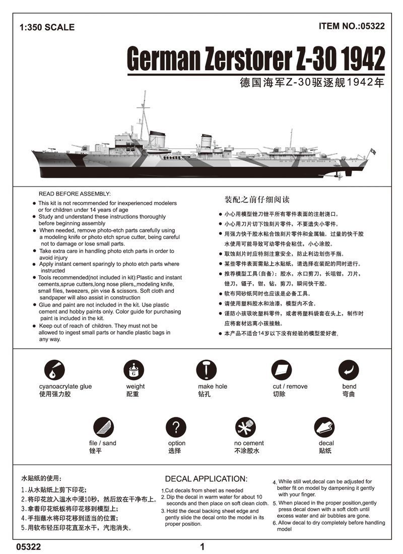 1:350 German Zerstorer Z-30: 1942