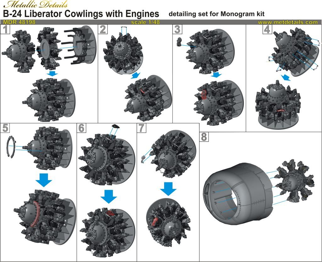 1:48 Consolidated B-24 Liberator - cowlings with engines set (for Monogram kits)