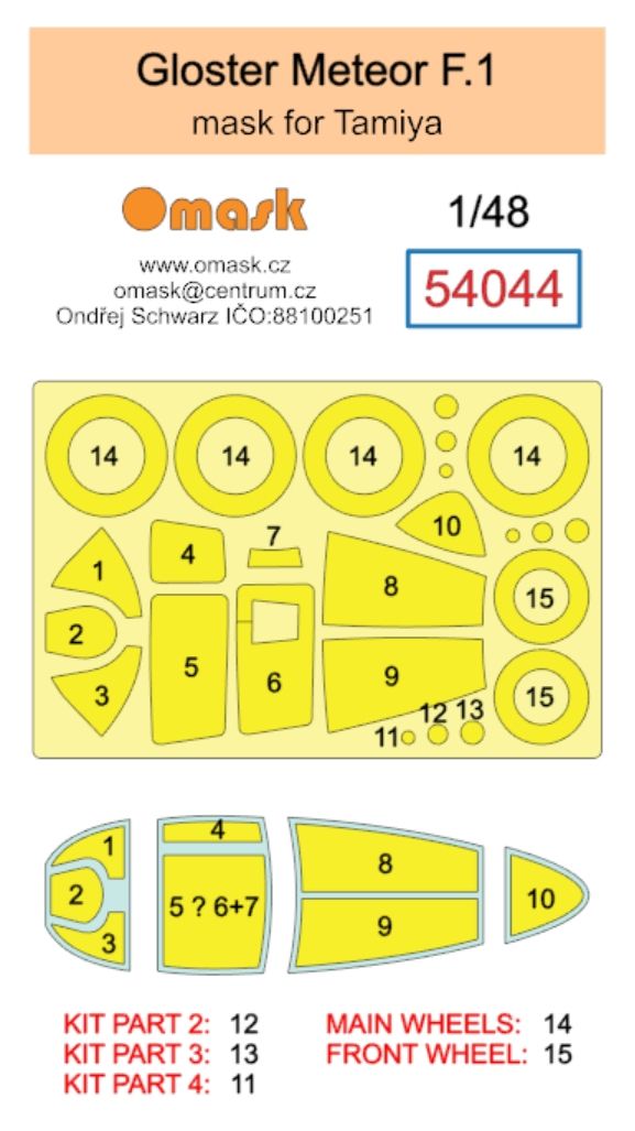 1:48 Gloster Meteor F.1 mask (for Tamiya)