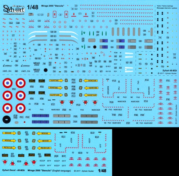 1:48 Stencils - Mirage 2000 (all versions) Safety markings for France & exports