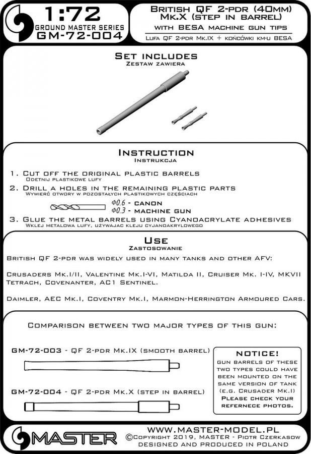 1:72 British QF 2-pdr (40mm) - version Mk.X (step in barrel) + Besa MG tips