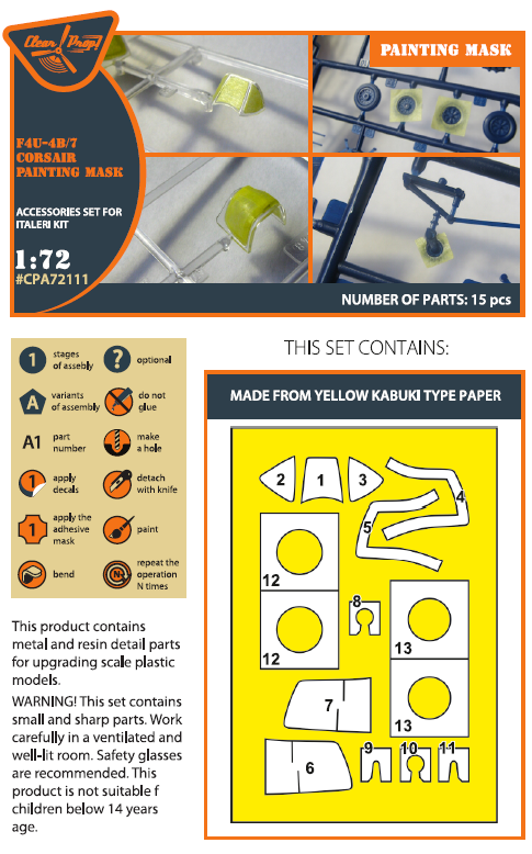 1:72 F4U-4B/7 Corsair Painting Mask (For Italeri)