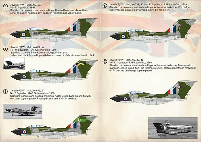 5. Javelin F(AW) Mk4, XA 635, ‘L’ No. 3 Squadron, RAF Geilenkirchen 1959. Standard scheme and national markings; Apple Green band around fin with unit crest superimposed. Fuselage serial and ‘L’ on fin in white.