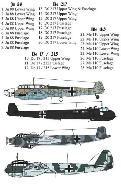 1:72 Luftwaffe Heavy Fighter Crosses for Junkers Ju-88 ; Dornier Do-17, 215, 217 and Bf-110