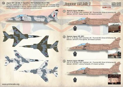 11. epecat Jaguar GR.MK 1. Nos. 6, 41 54 Sqn, RAF Coltishall, UK - Thumrait AB, Oman & Muharraq AB, Bahrain. XZ375 S. The Avid Guardian Reader. 17 mission symbols. Pilot Michael Rondot.