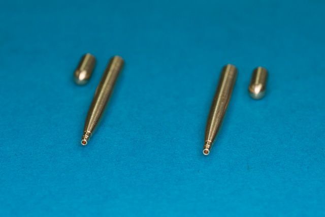 Set contains two pcs of Hispano cannons and two hole plugs witch where mounted instead of two additional Hispano cannons. Those barrels where used in Spitfire "wing E & C"