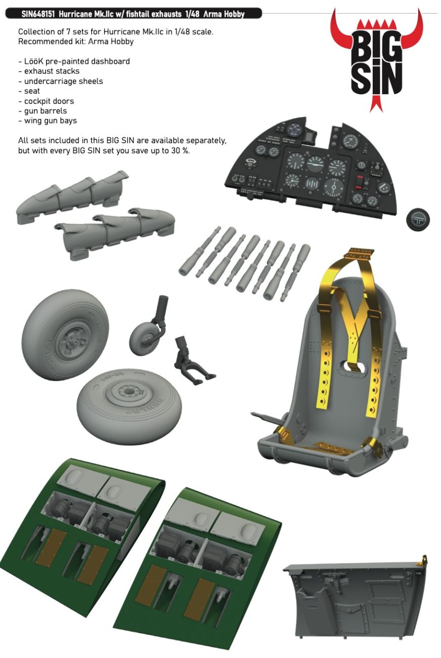 1:48 Hawker Hurricane Mk.IIc with Fishtail Exhausts for Arma Hobby