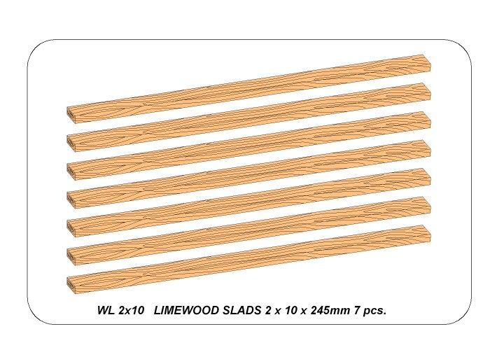 Limewood slats 2 x 10 x 245mm x 7 pcs.
